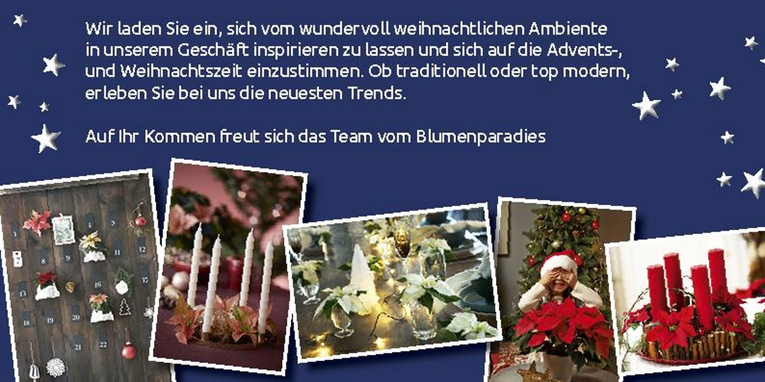 Weihnachtsausstellung Mo-Fr 8.00 – 18.00 Uhr, Sa 8.00 – 14.00 Uhr