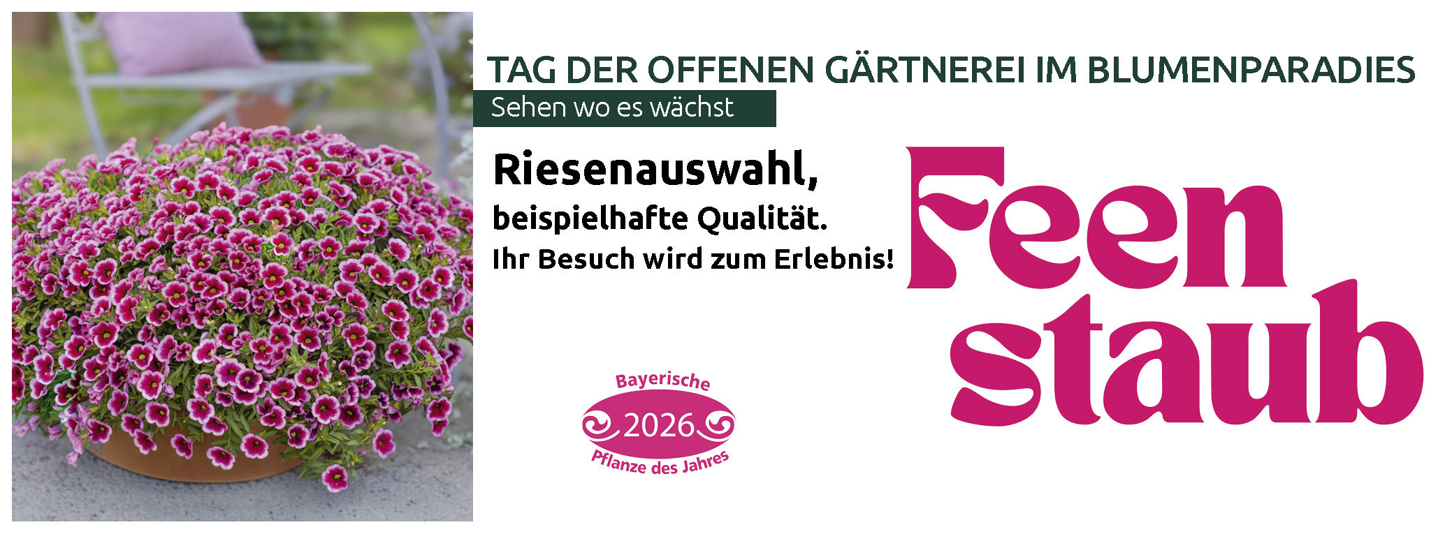 Besuchen Sie uns am 24. und 25. April direkt in unserer Gärtnerei und entdecken Sie die schönsten Pflanzen für Balkon und Terrasse – frisch, regional und mit Liebe gezogen.